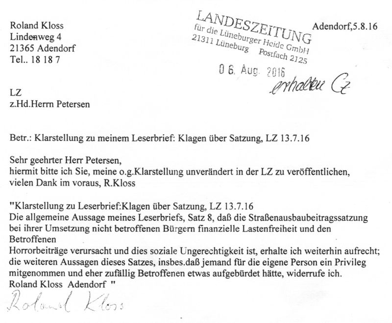 Adendorf-Straßen.deLeserbriefeKlagen über Satzung