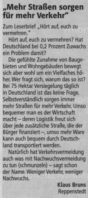 Leserbrief zum Artikel „Verkehrsentwicklung nicht dem Zufall überlassen“ vom 19.04.2017: