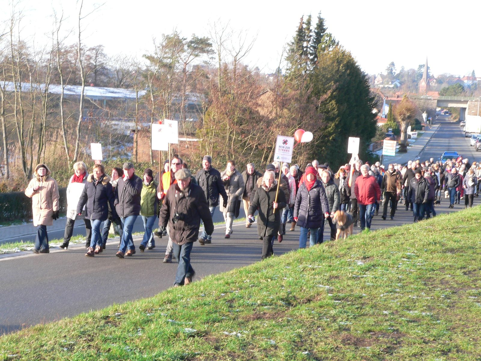 Alle Achtung! Ein kleiner Ort steht auf! Über 100 Bürger der Gemeinde Hohnstorf an der Elbe beteiligten sich an einem Protestmarsch zum Gemeindezentrum, um dem Bürgermeister sowie den Ratsmitgliedern der Gemeinde eine Protestnote zu überreichen, die die Forderung zur Abschaffung der Straßenausbausatzung (STRABS) zum Gegenstand hat.