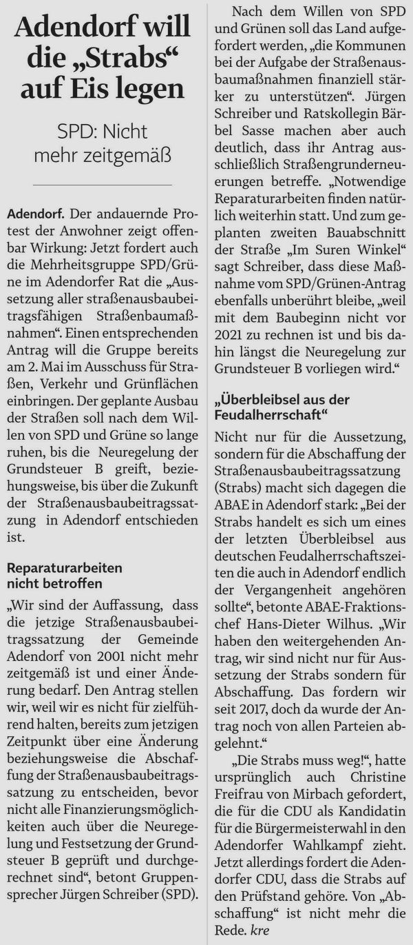 Strabs muss weg – Straßenbau ist öffentliche Daseinsvorsorge für Adendorf fair mit Flair!
