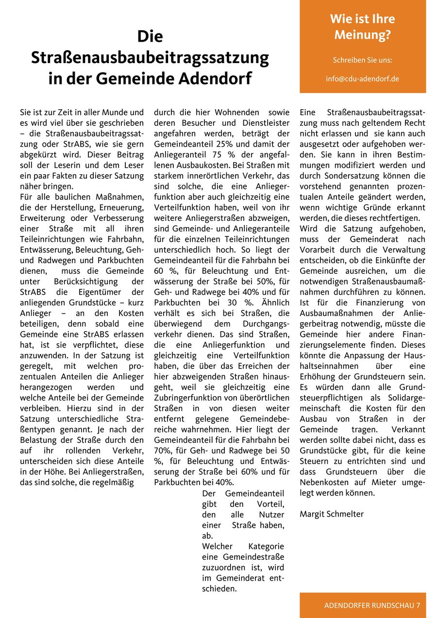 Die Straßenausbaubeitragssatzung in der Gemeinde Adendorf Adendorfer Rundschau, April 2020 (CDU Adendorf)