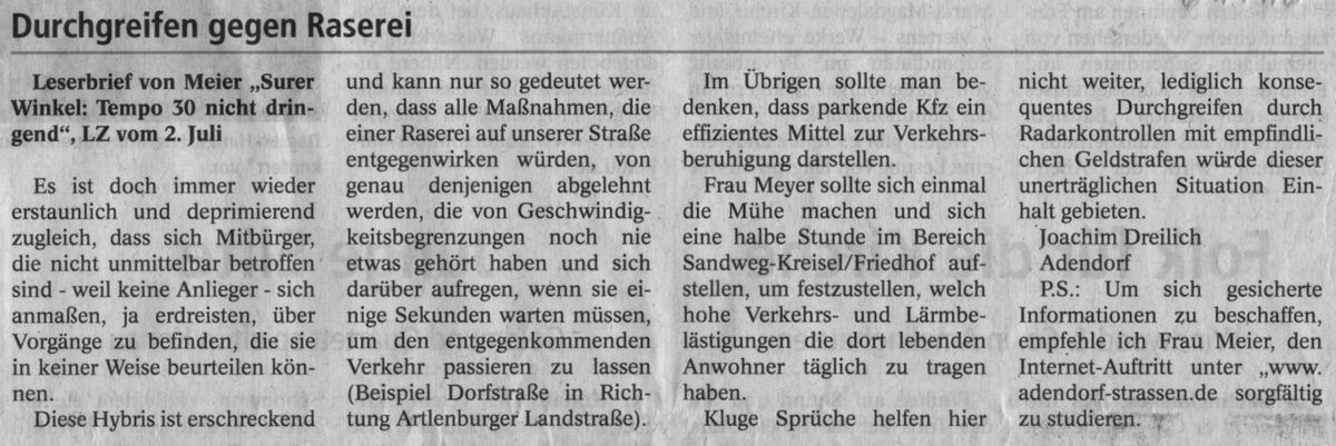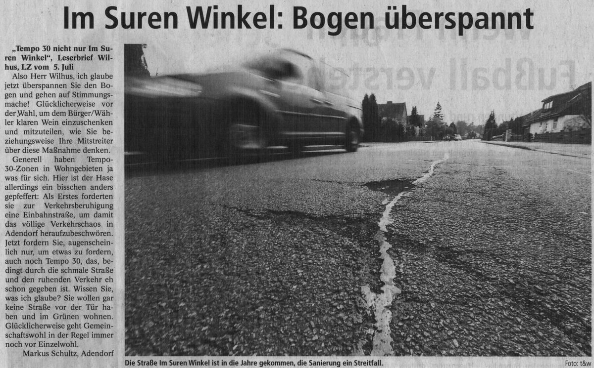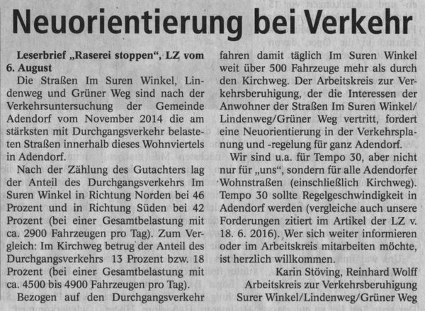 LZ-Berichterstattung über die „Sitzung des Ausschusses für Straßen, Verkehr und Grünflächen“ vom 17.08.2017: