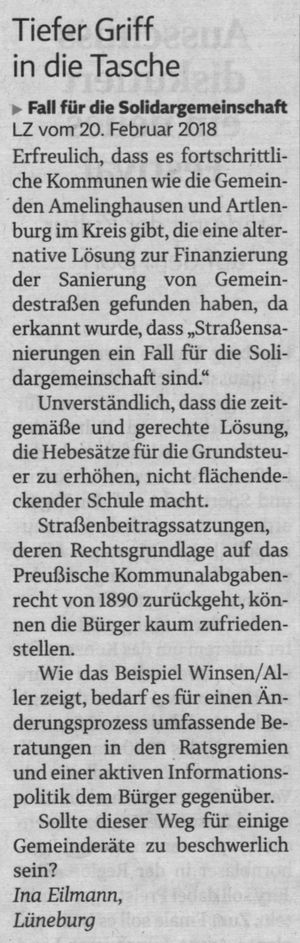 Leserbrief zum Artikel „Fall für die Solidargemeinschaft“ vom 20.02.2018: