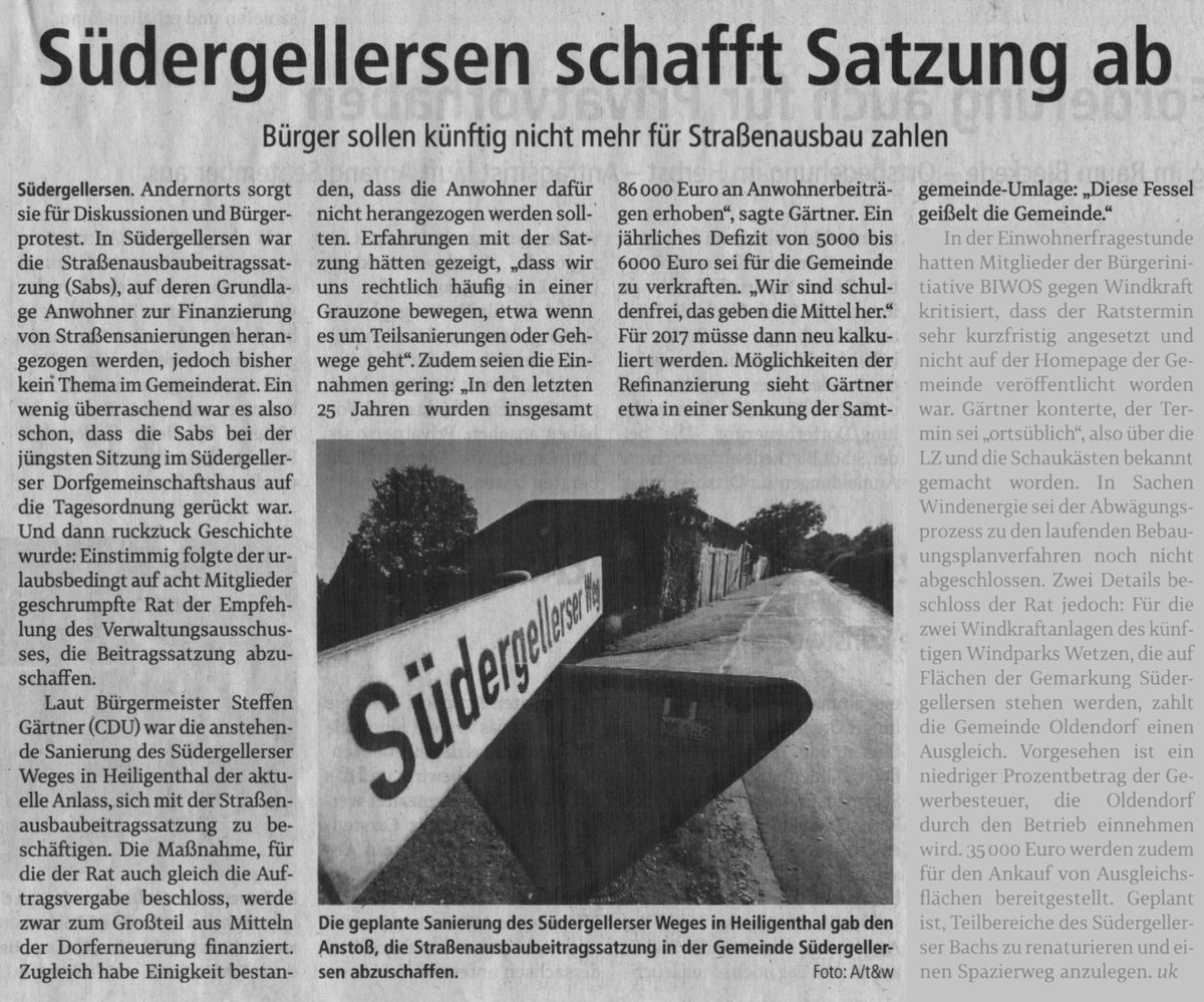 Der Widerstand gegen das Einkassieren ungerechter Straßenausbaubeiträge wächst bundesweit. Ganz deutlich zeigt das die Resonanz, die der VDGN auf die am 24. Oktober 2016 im Ersten Programm ausgestrahlte Sendung „Geld-Check – Wo die Kommunen hinlangen“ erfahren hat… (Weiterlesen)